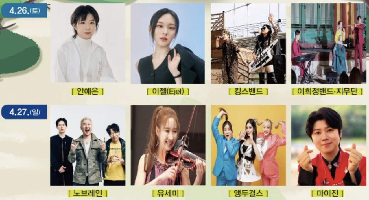 다. 기타 : 뮤직 홍보관, 로봇 댄스, 음표 타투 및 페이스 페인팅, 아트 풍선, 농특산물 및 먹거리 부스 등