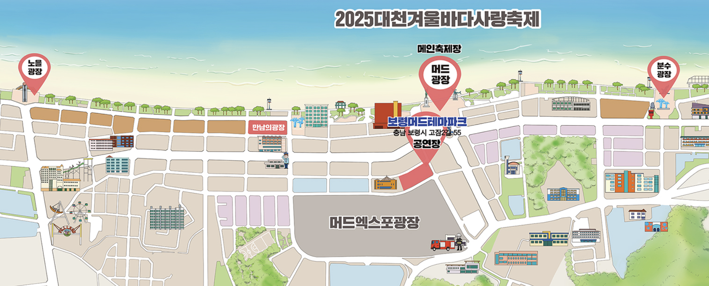 2. 행사 장소 : 보령 머드 테마파크 및 대천해수욕장 머드 광장 일원