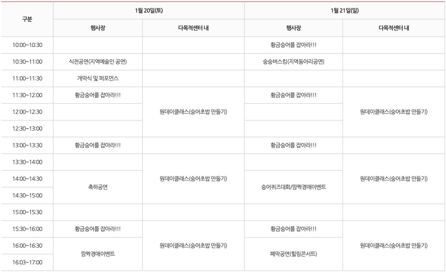 1. 행사 일정 : 2024년 1월 20일(토) ~ 2024년 1월 21일(일)