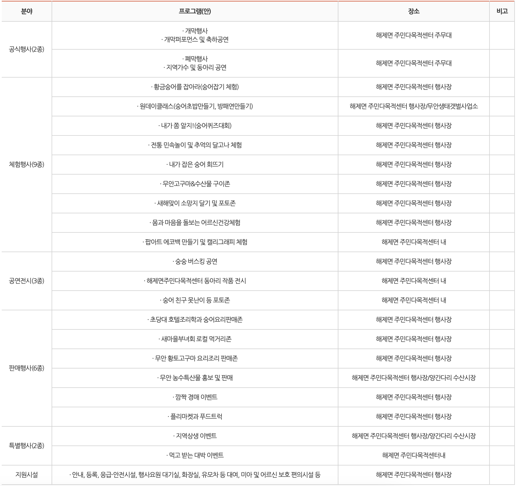 2. 행사 장소 : 전남 무안군 해제면 주민다목적센터 & 양간다리 수산시장