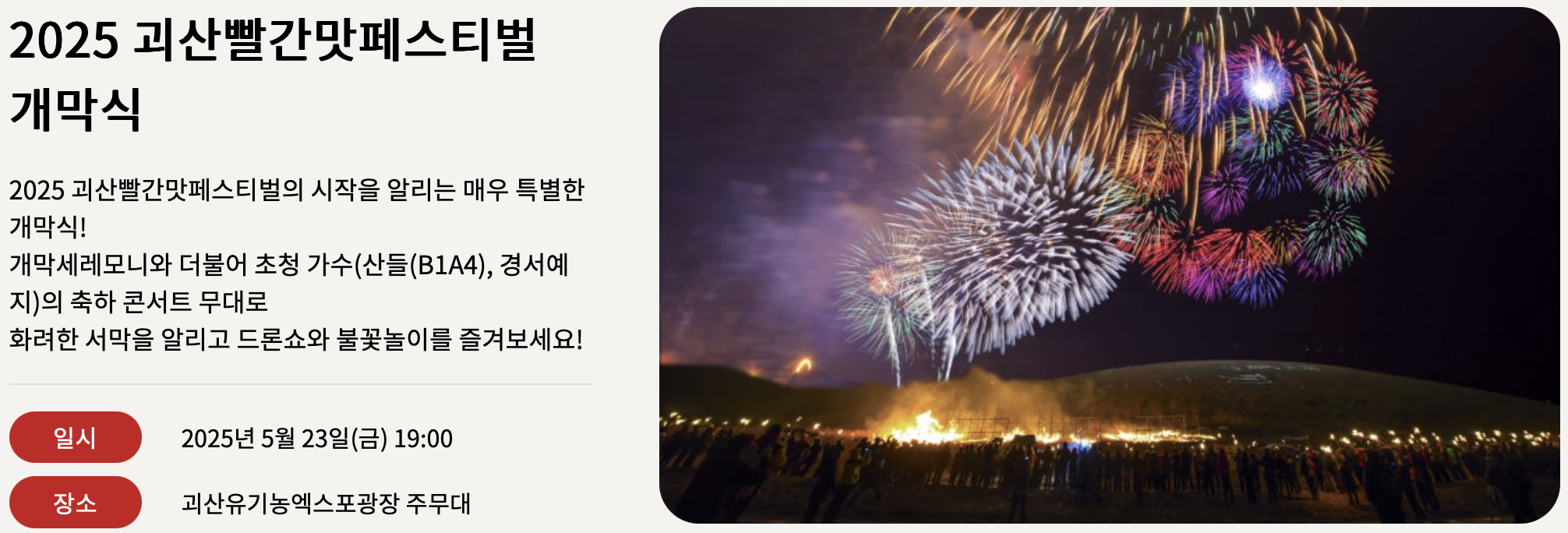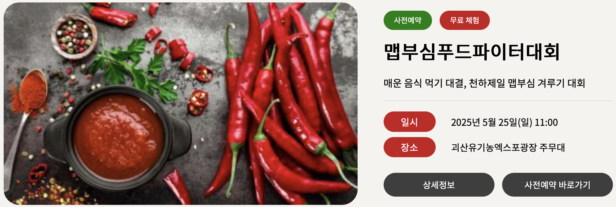 *위 사진과 관련 정보는 '2025 괴산 빨간맛 페스티벌 대표 홈페이지' 에서 발췌하였습니다.