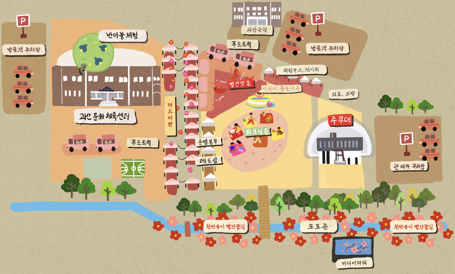 라. 기타 : 괴산 레드 마켓, 안전 체험 및 건강 체험관, 빨간 올갱이 전시 및 체험관, 푸드트럭 등