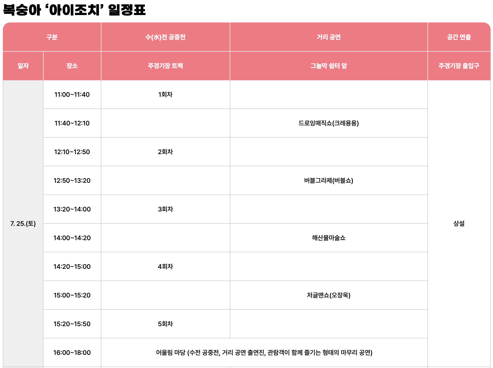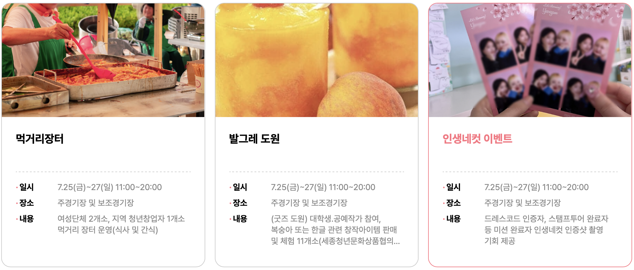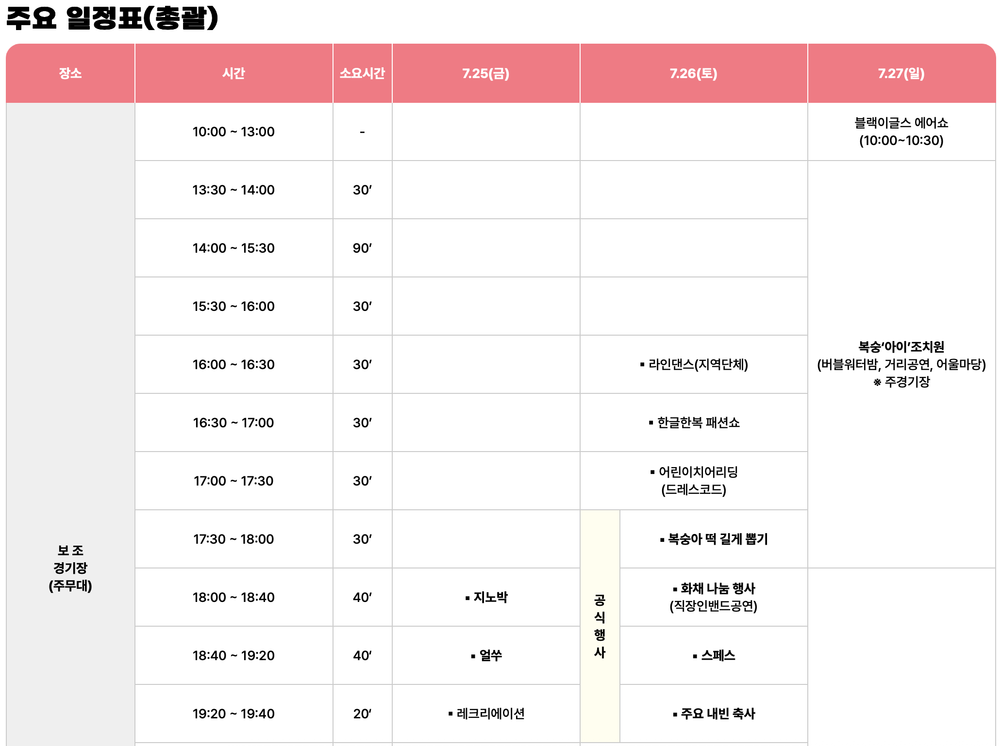 1. 행사 일정 : 2025년 7월 25일(금) ~ 2025년 7월 27일(일)