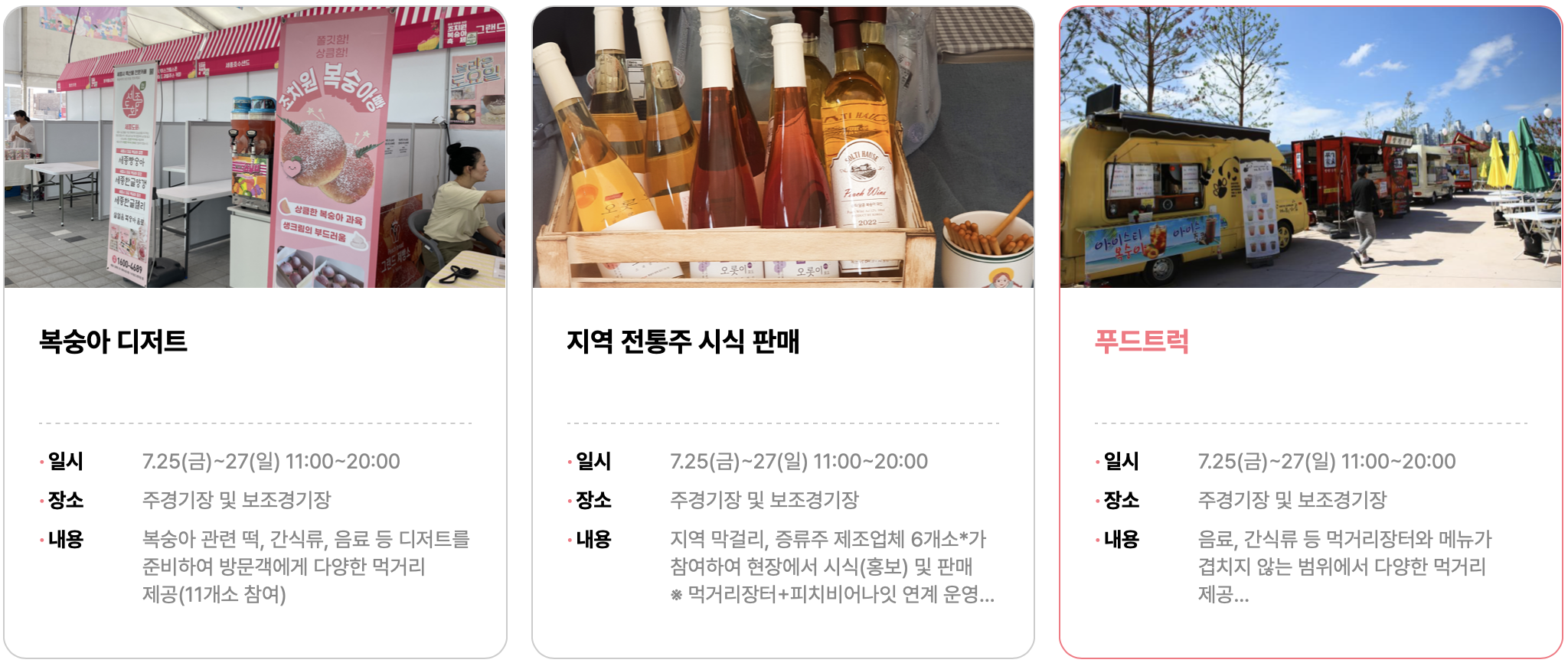 나. 부대 프로그램 : 버블 워터밤, 복숭아 떡 길게 뽑기, 복숭아 화채 나눔, 피치 비어 나잇 등