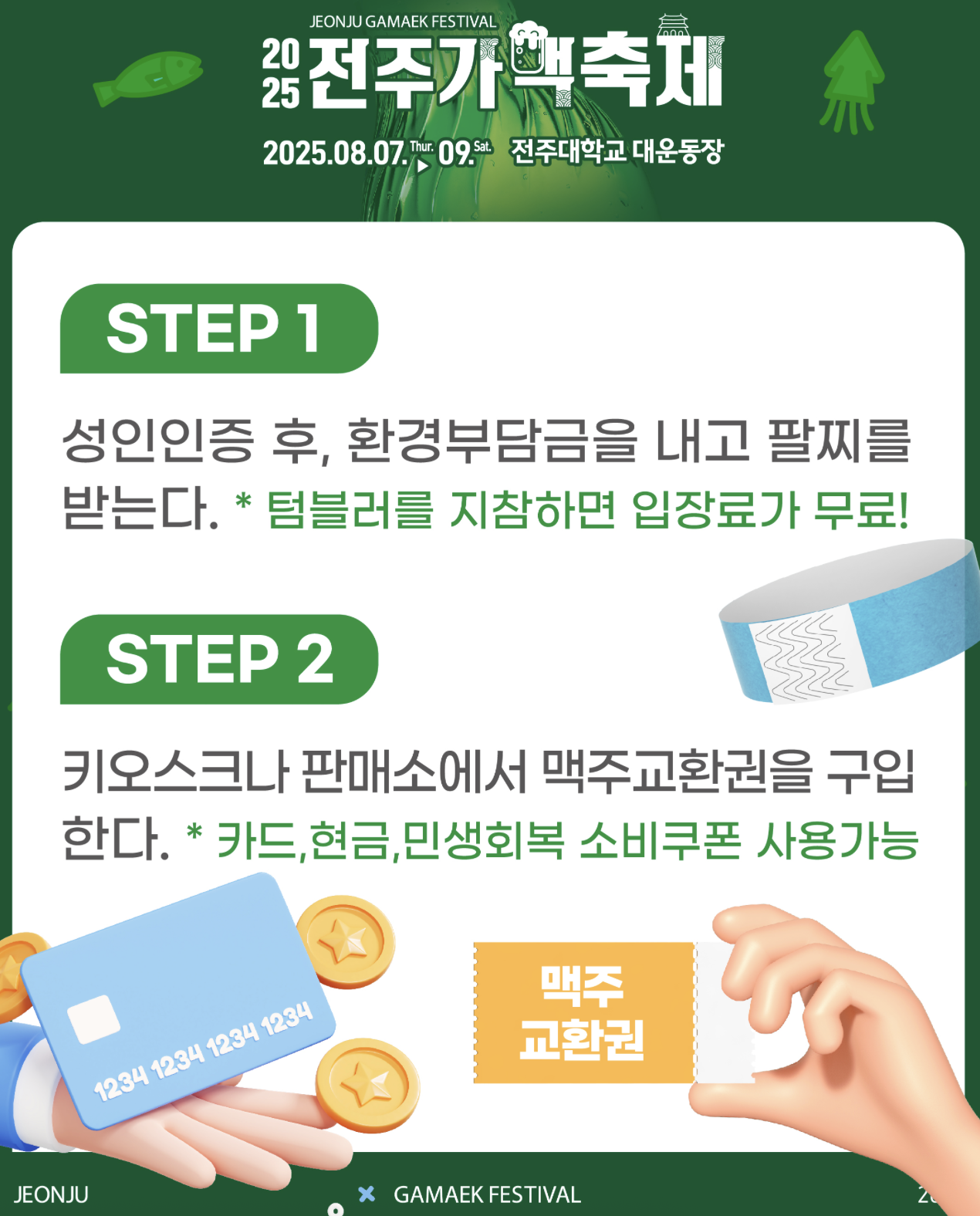 - 입장 : 성인인증 및 입장료 (환경 부담금) 결제