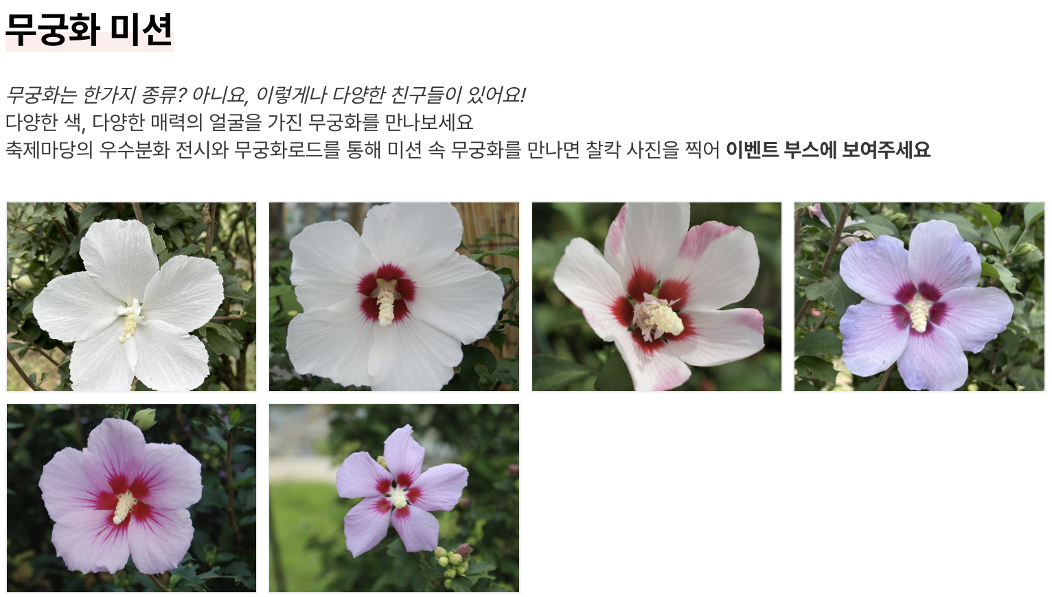 *위 사진과 관련 정보는 '나라꽃 무궁화 대축제 대표 홈페이지' 에서 발췌하였습니다.