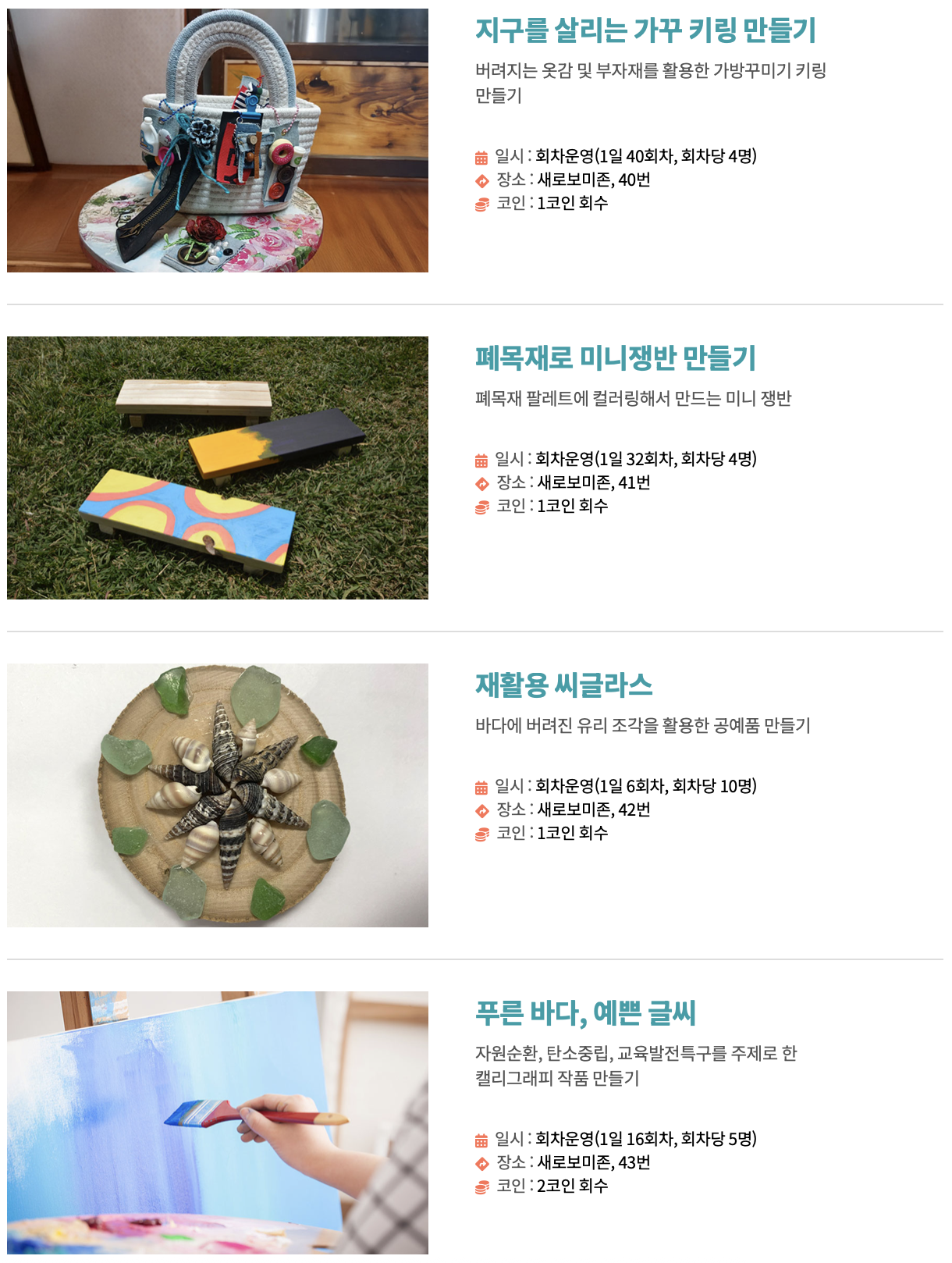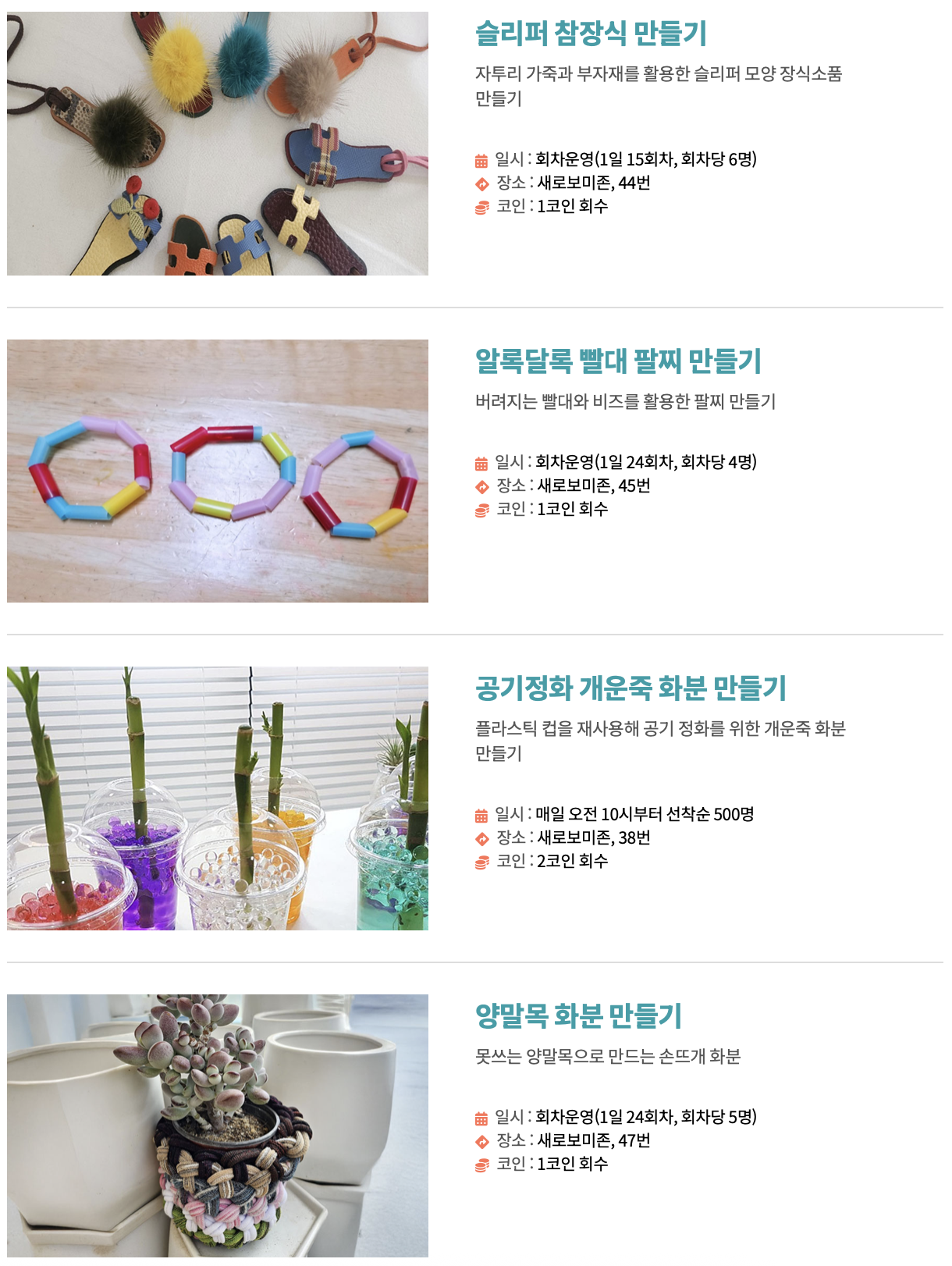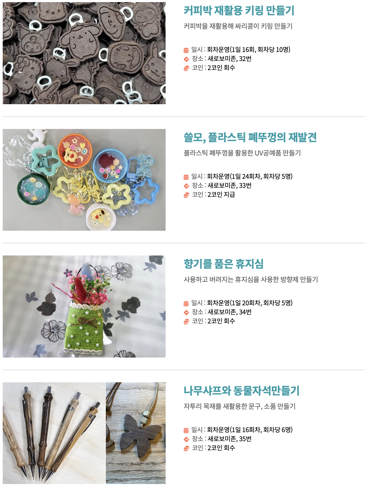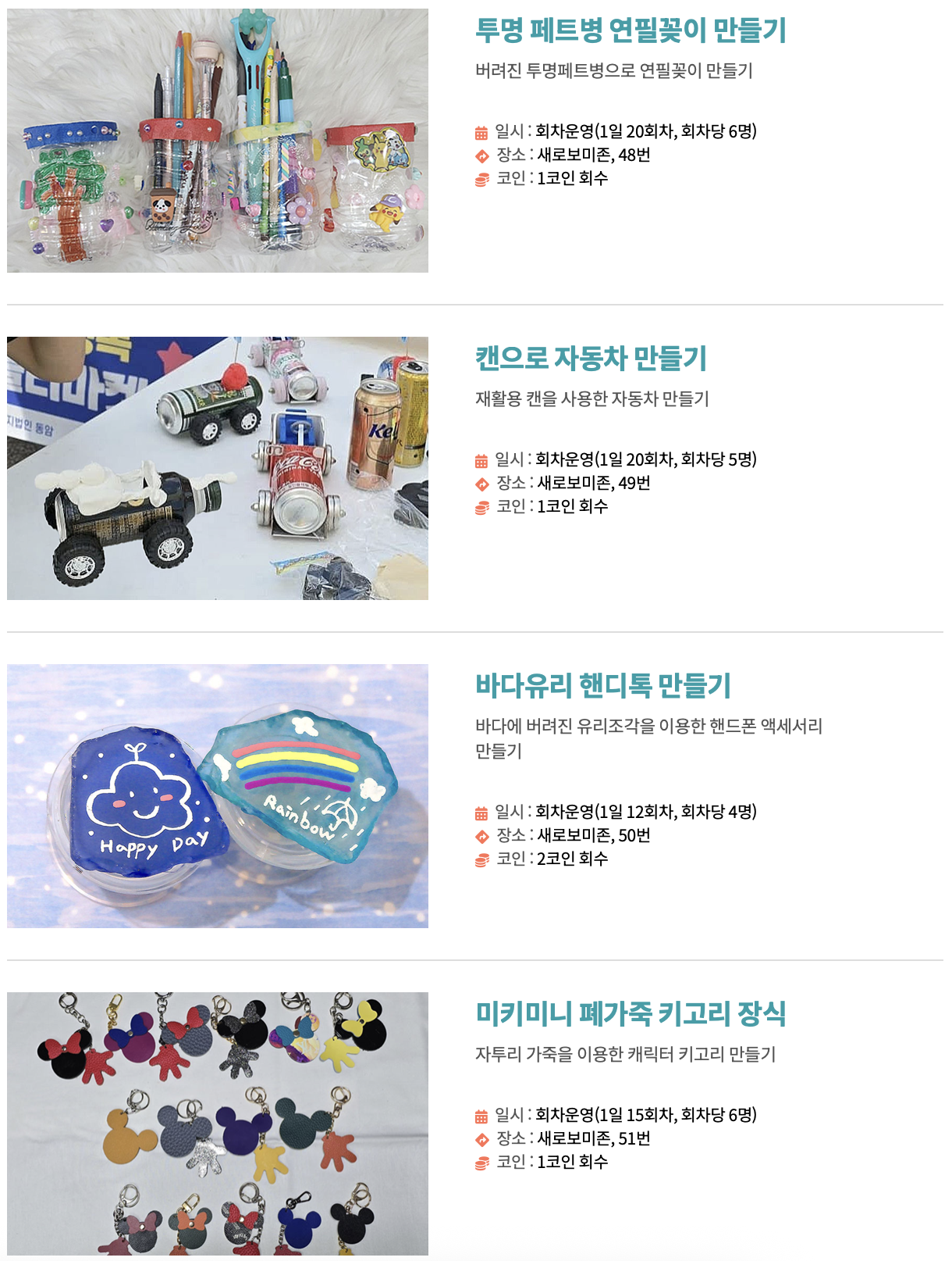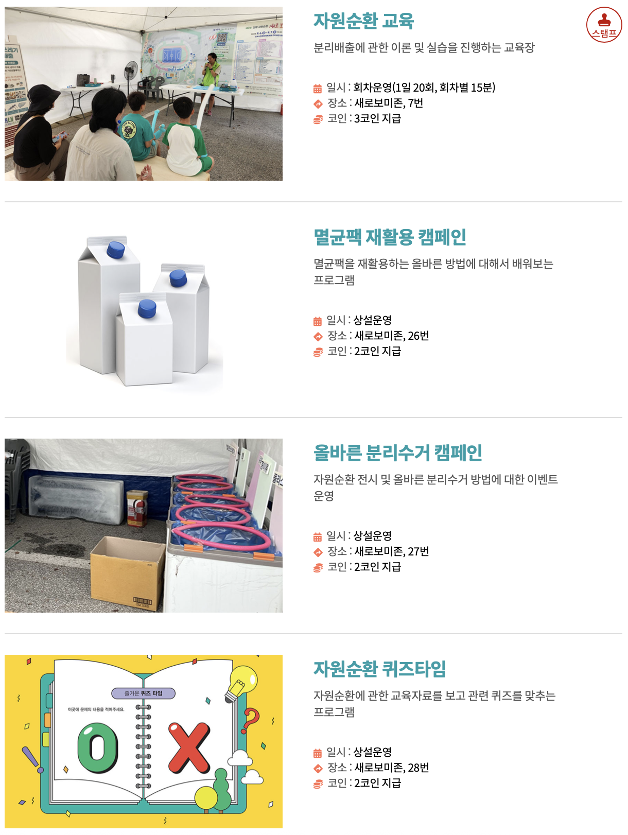 - 자원 순환 교육 : 분리 배출에 대한 이론 및 실습 교육 (3코인 지급)