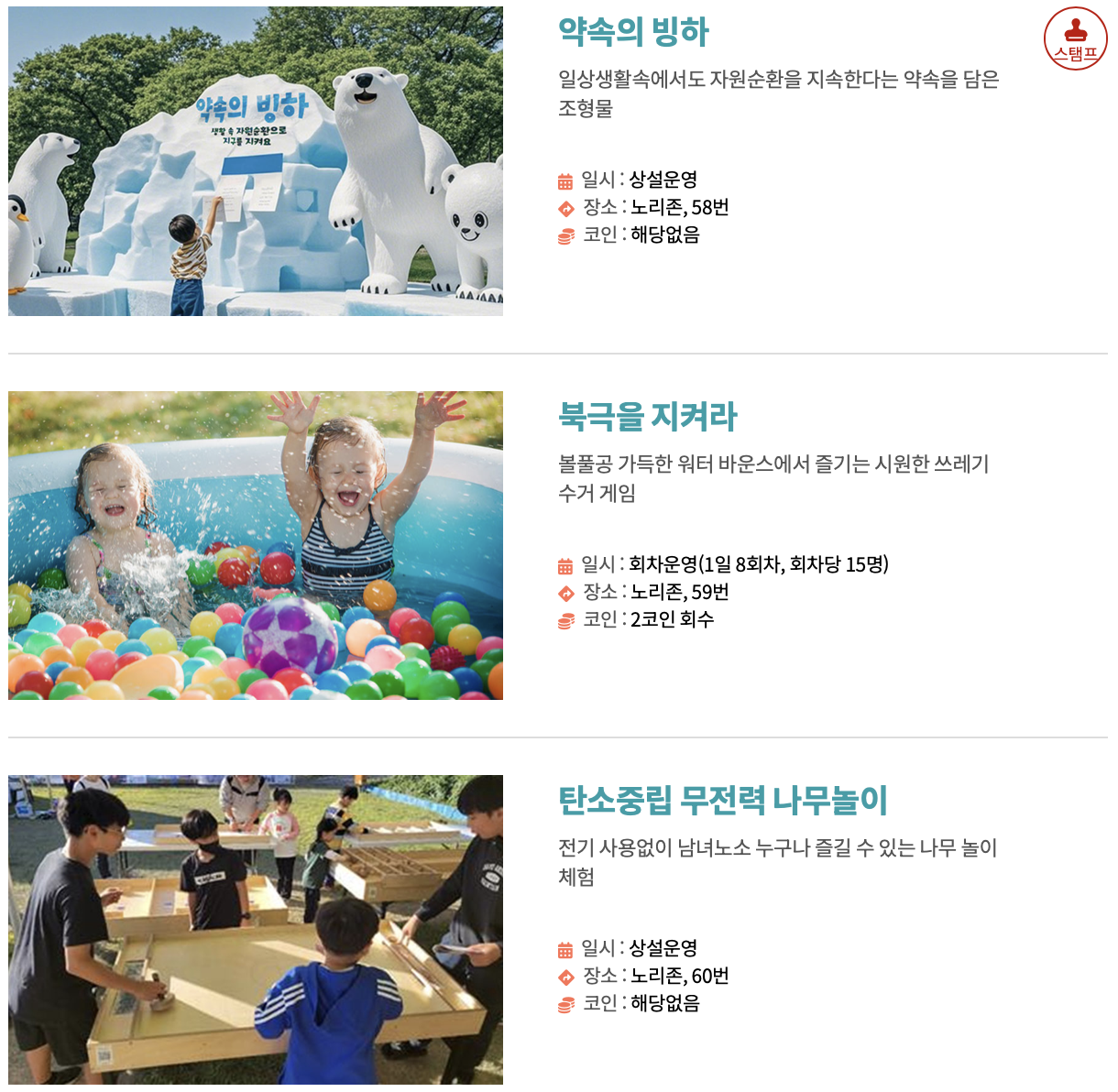 나. 부대 프로그램 : 북극을 지켜라, 아이스크림 코인샵, 도전 그린벨, 60초 챌린지 등