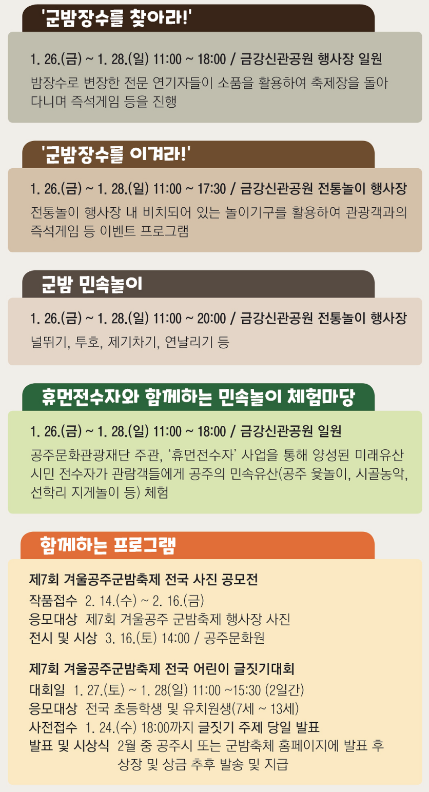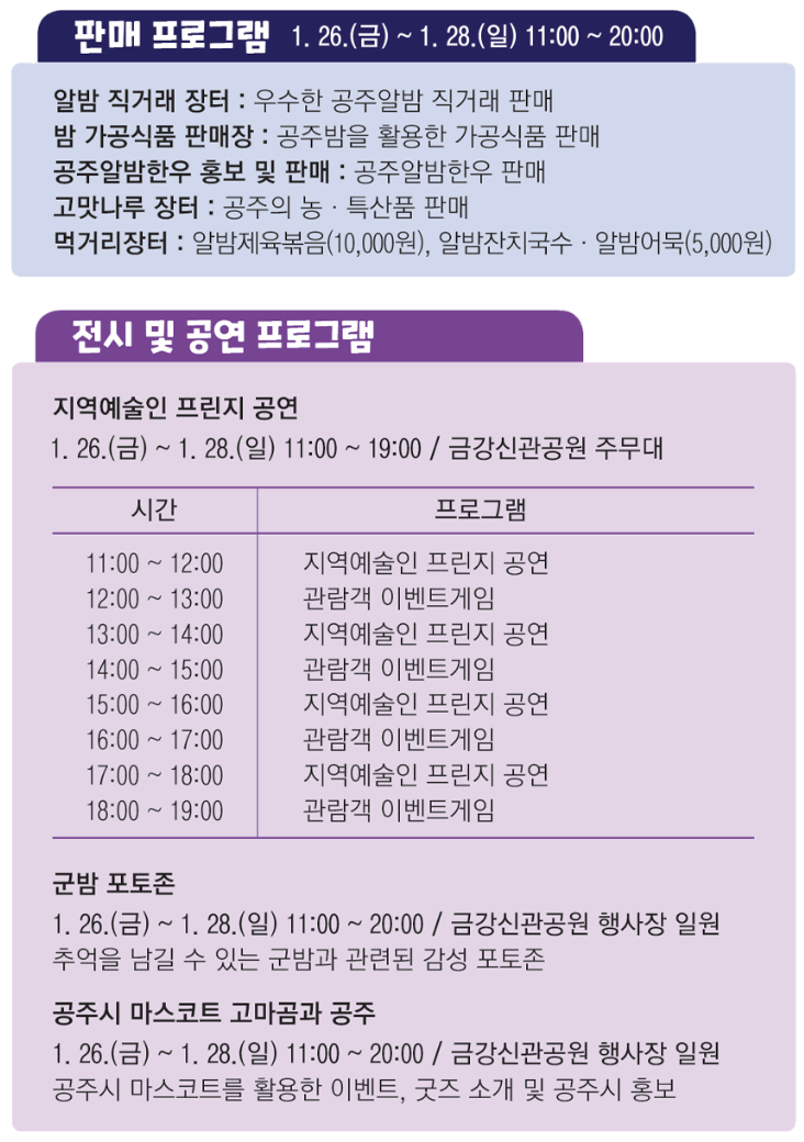 이번 돌아오는 주말에는 '겨울공주 군밤축제' 가 진행되는 공주에 방문하시어
