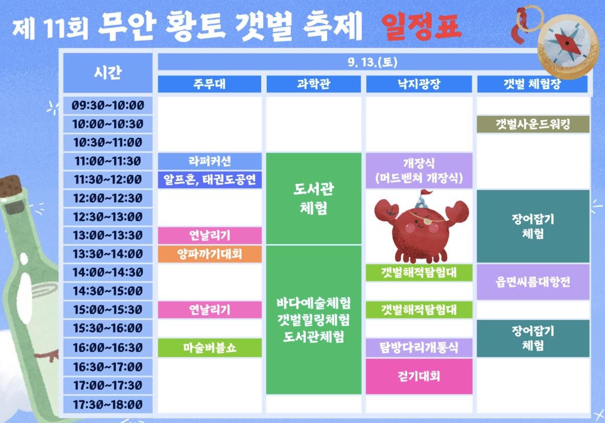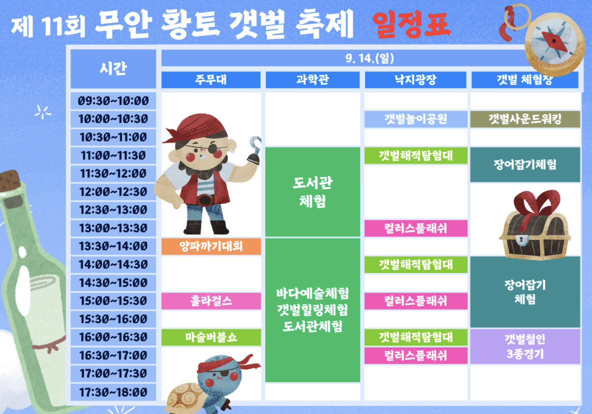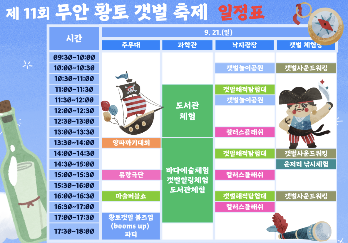 나. 부대 프로그램 : 황토 물놀이 운동회, 갯벌 해적 탐험대, 갯벌 어드벤처 OX 퀴즈, 갯벌 사운드 워킹 등
