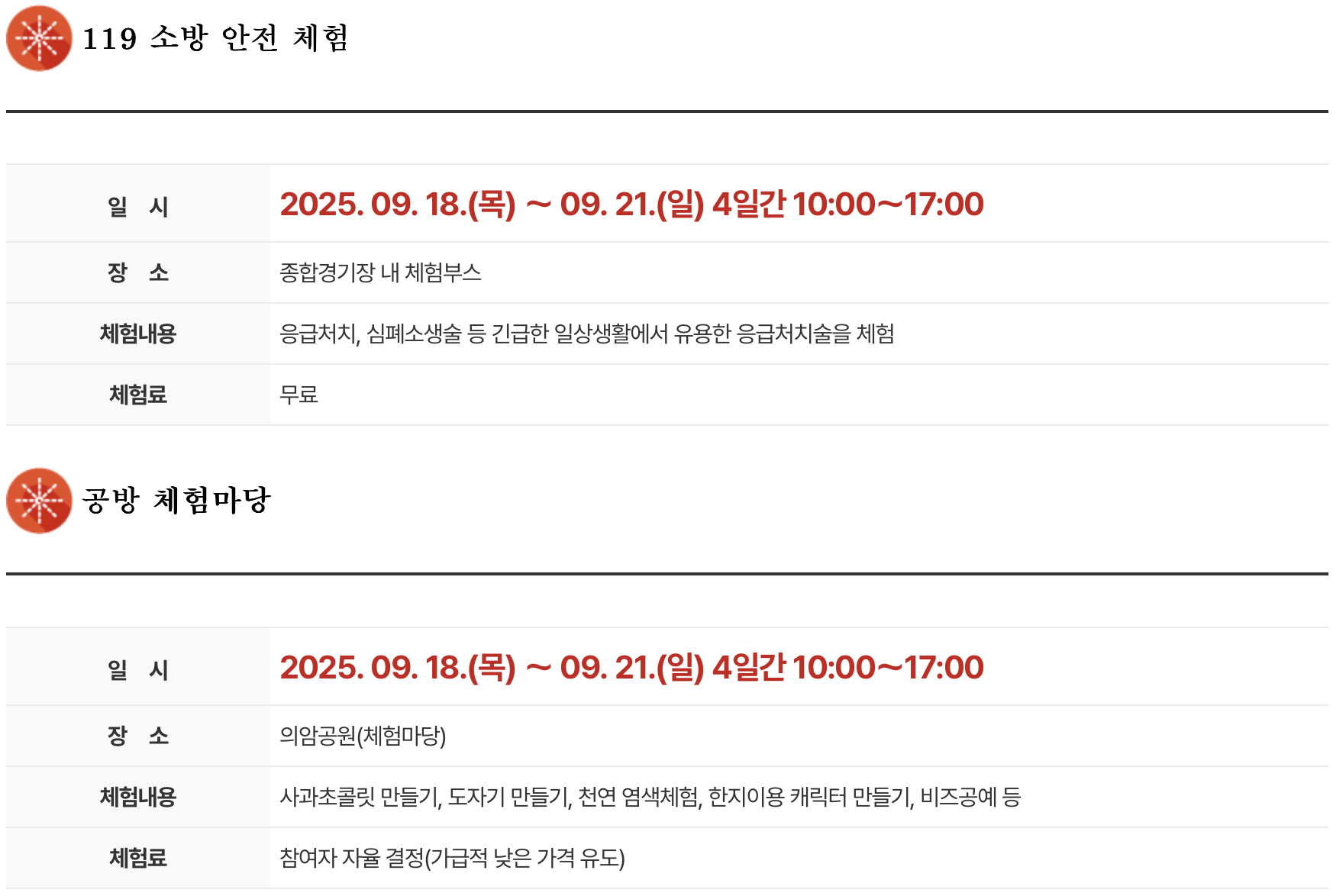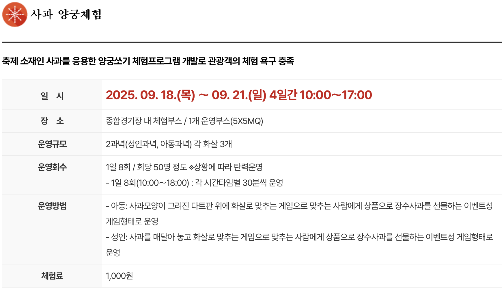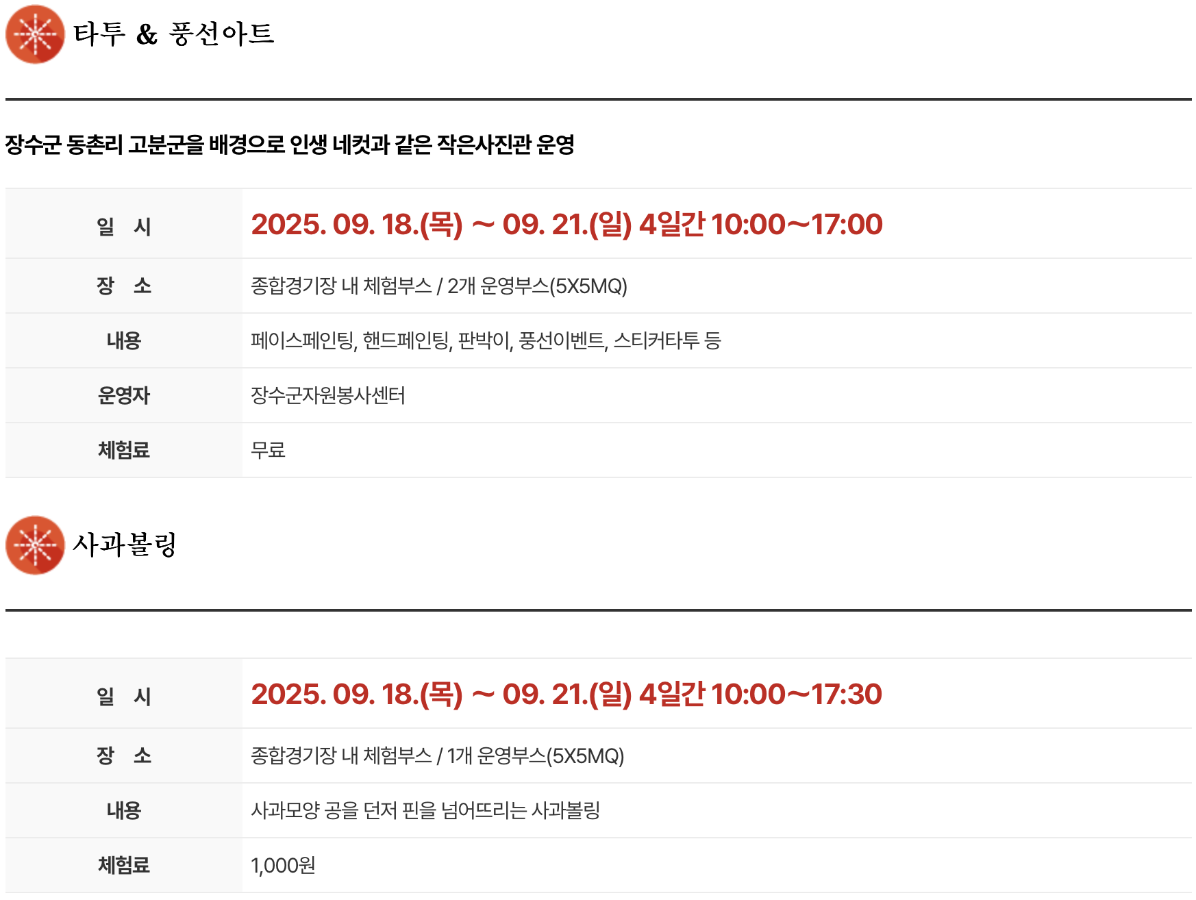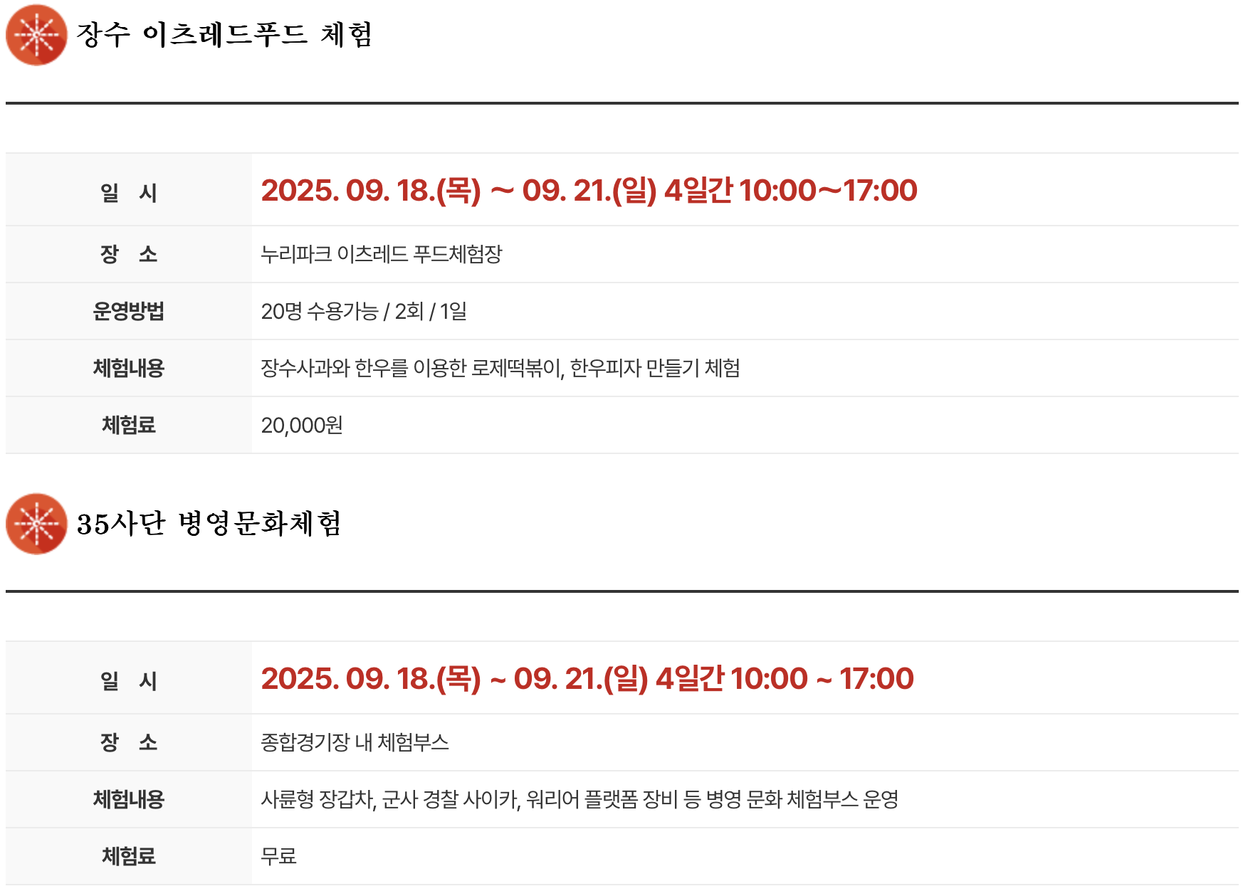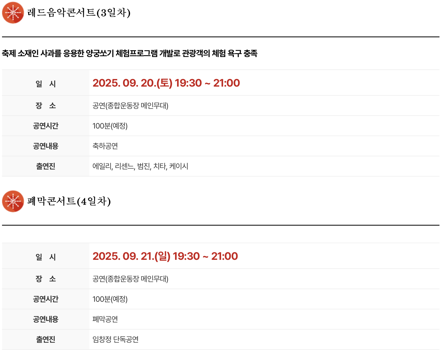 1. 행사 일정 : 2025년 9월 18일(목) ~ 2025년 9월 21일(일)