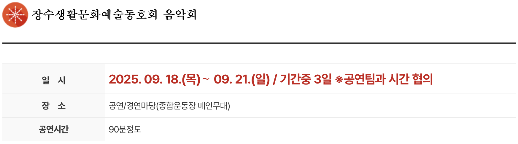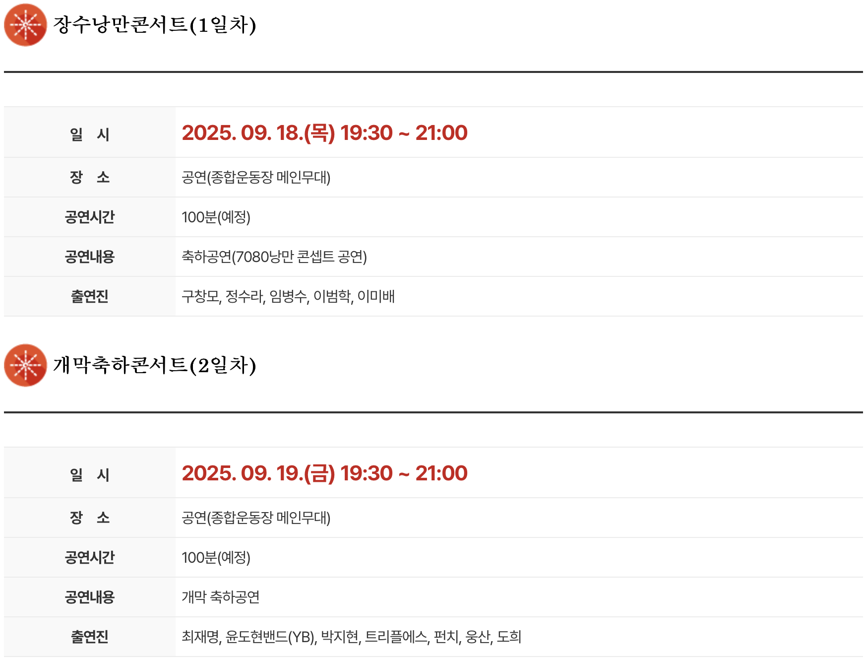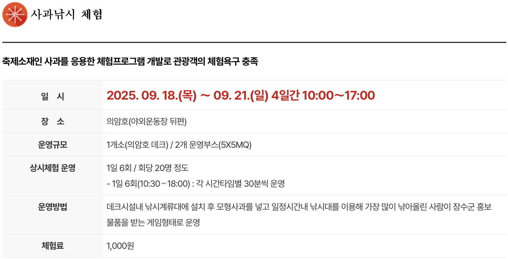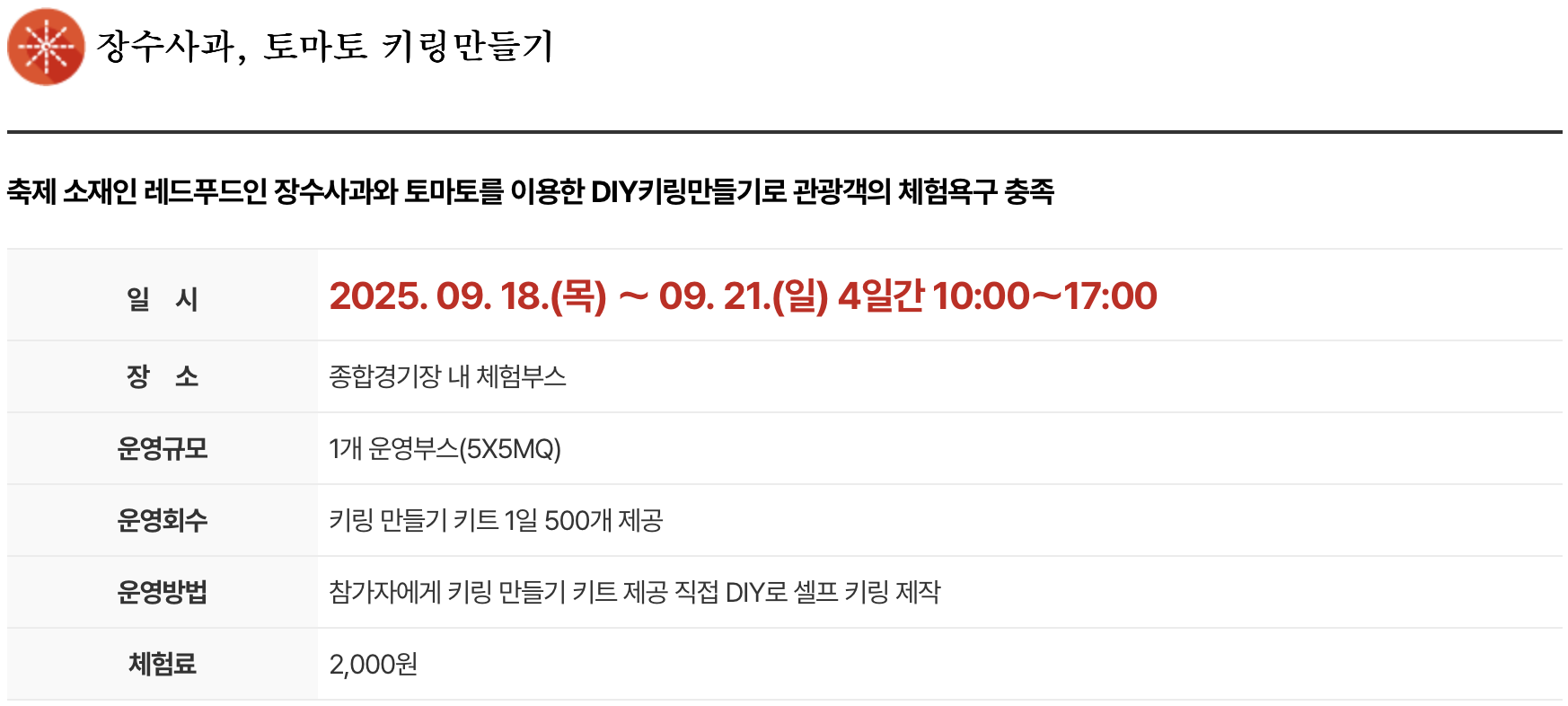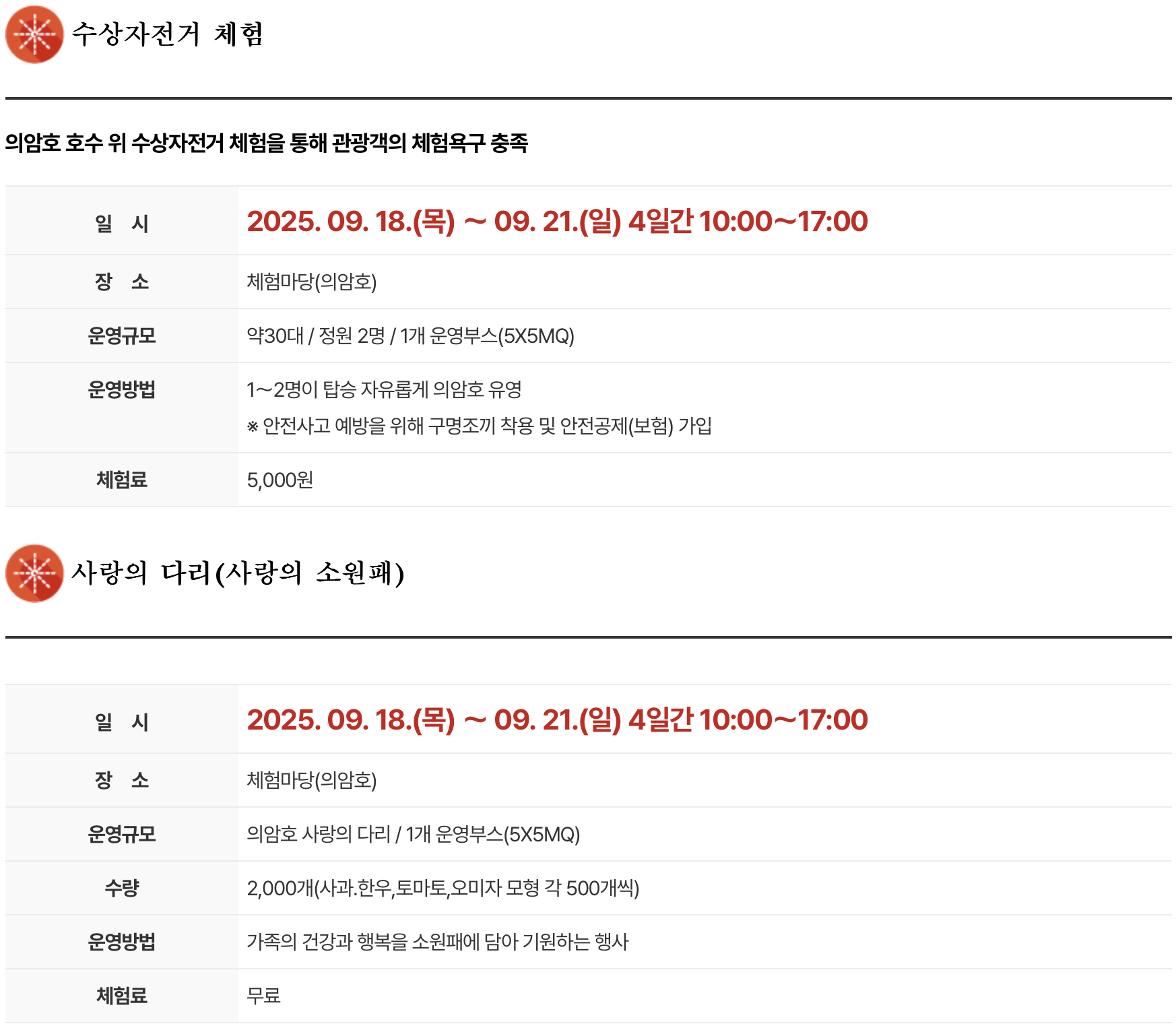 1. 행사 일정 : 2025년 9월 18일(목) ~ 2025년 9월 21일(일)