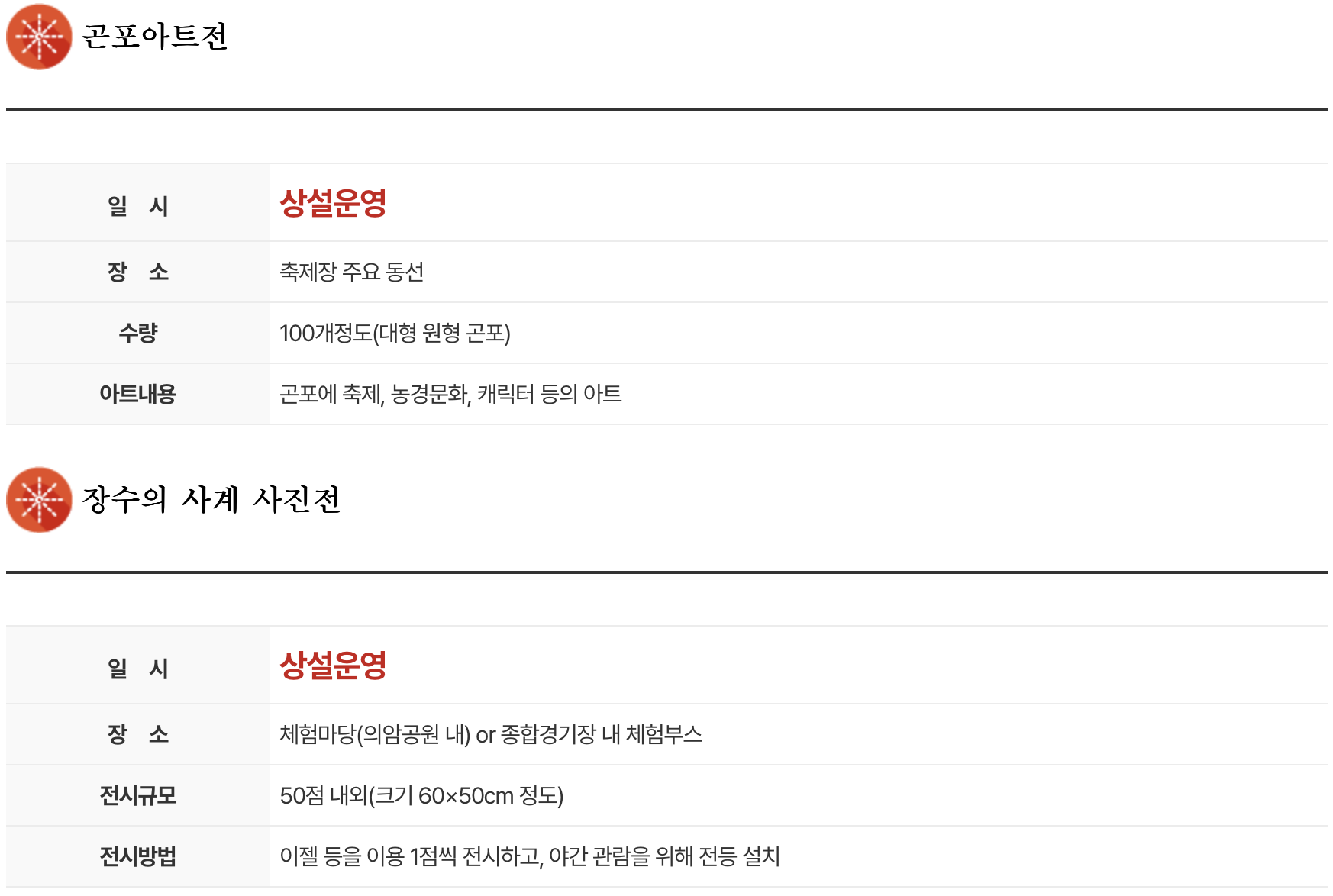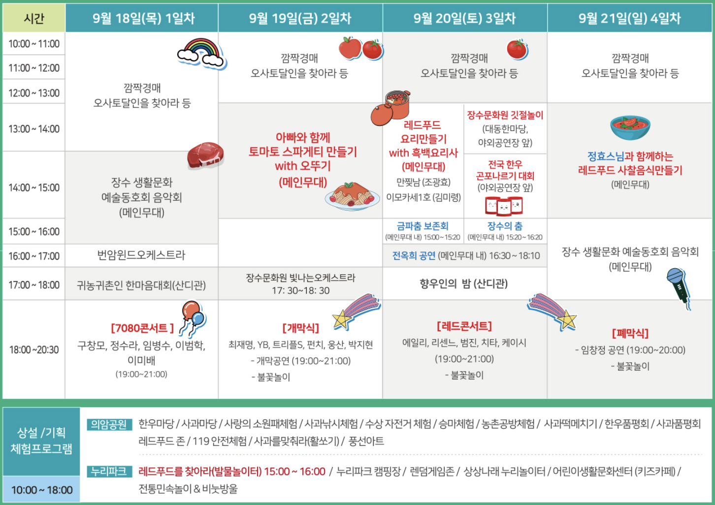 라. 기타 : 깜짝 경매, 귀농귀촌인 한마음 대회, 한우 및 사과 품평회, 레드푸드 존, 풍선아트, 상상나래 누리놀이터 등