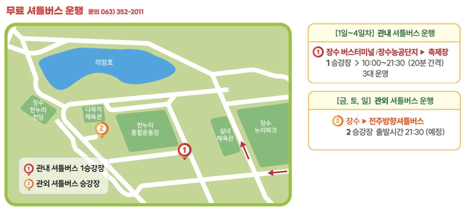 아래 '무료 셔틀버스 운행 안내' 를