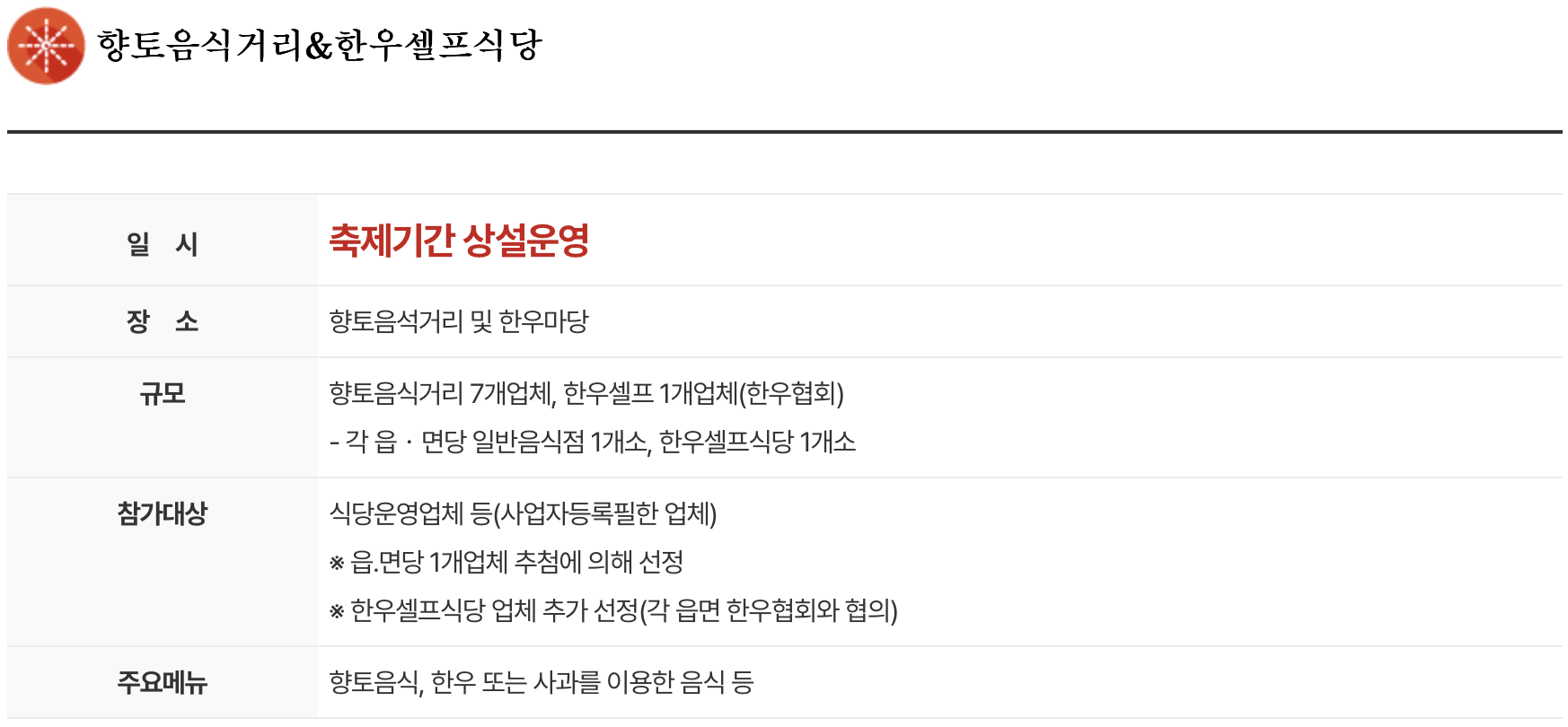- 한우마당 및 레드푸드 존