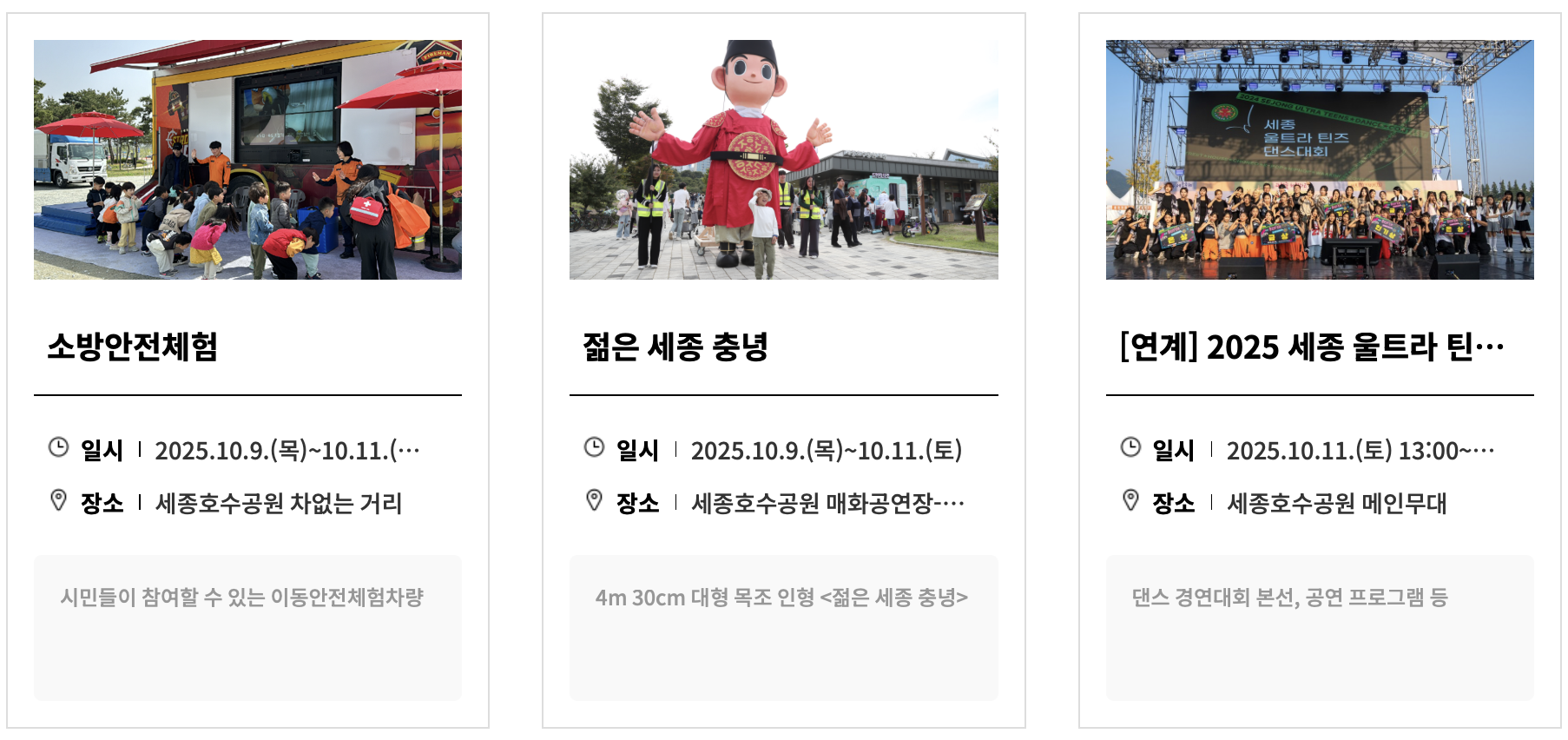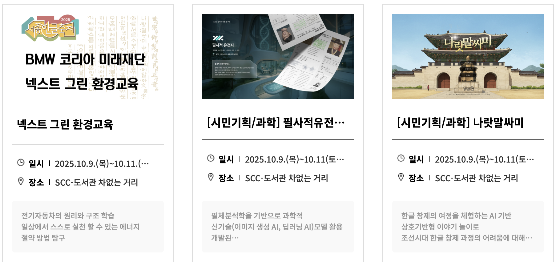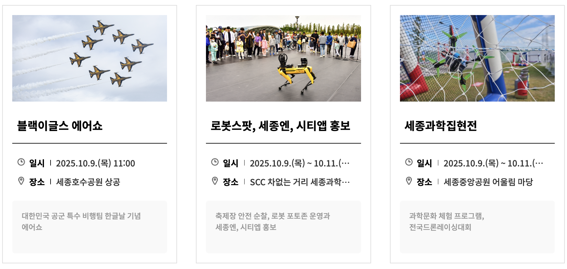 1. 행사 일정 : 2025년 10월 9일(목) ~ 2025년 10월 11일(토)