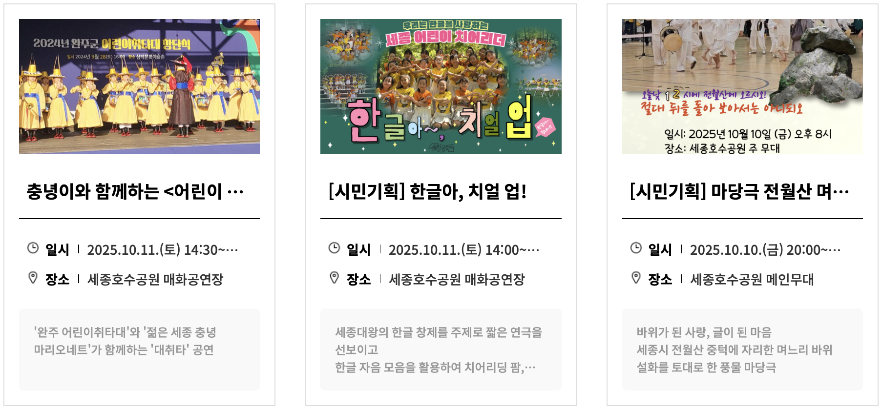 *위 사진과 관련 정보는 '세종시 문화관광재단 홈페이지' 에서 발췌하였습니다.