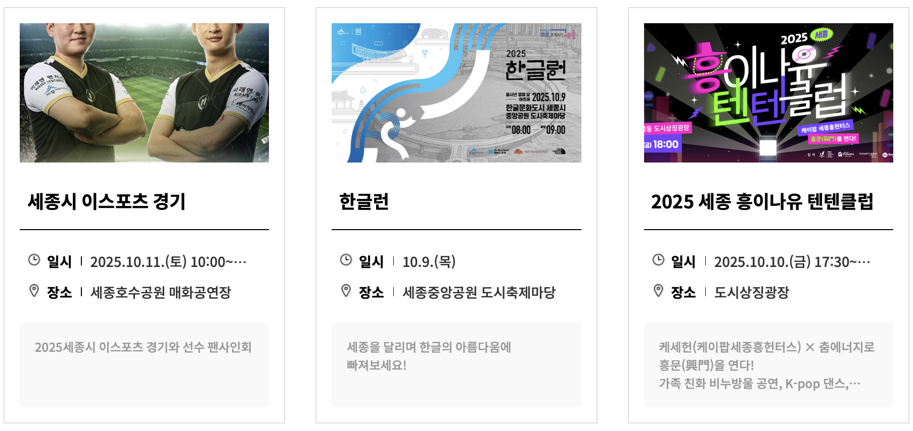 라. 기타 : 플레시 몹, 세종시 이스포츠 경기, 반딧불이 독서 뜰, 한글 상품 박람회, 한글 포토존 등