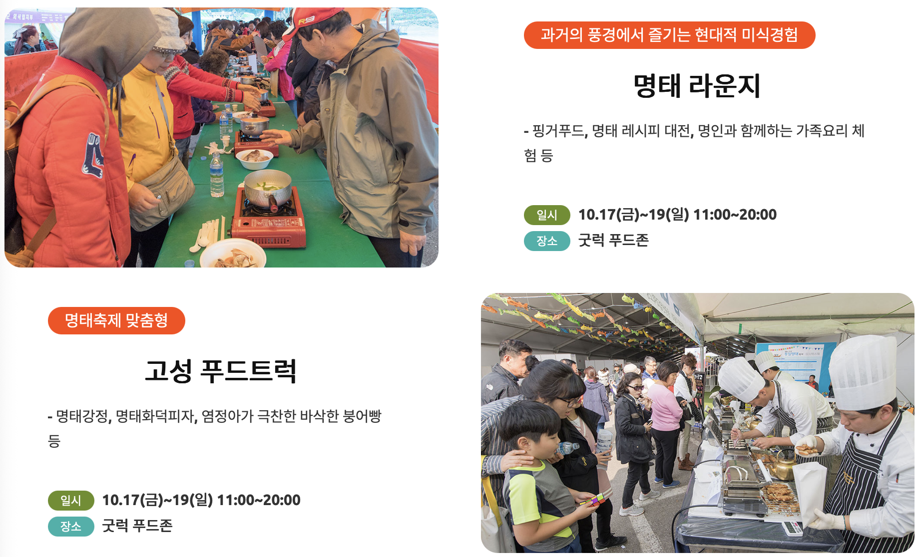 - 명태 라운지 : 핑거푸드, 명태 레시피 대전, 가족요리 체험 등
