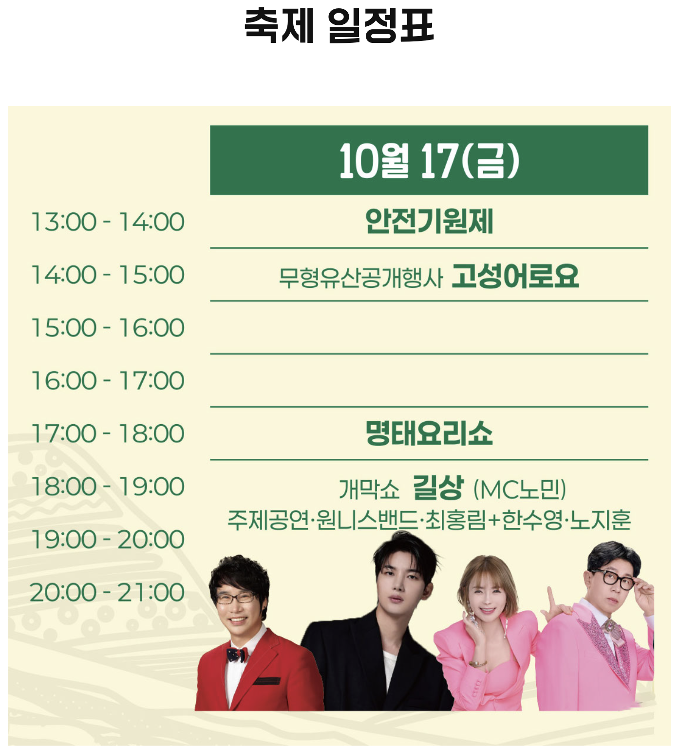 1. 행사 일정 : 2025년 10월 17일(금) ~ 2025년 10월 19일(일)