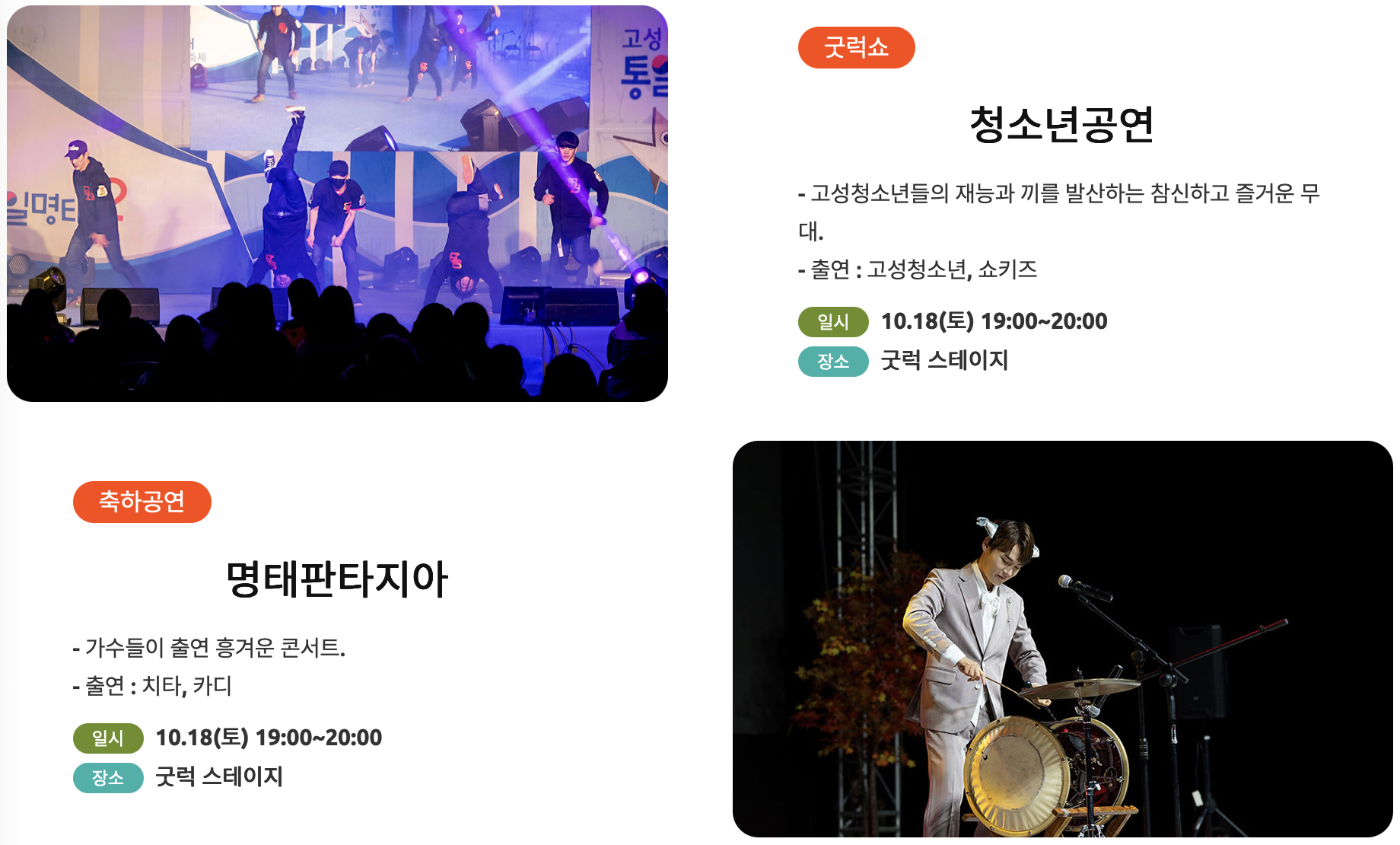 - 굿럭쇼 : 고성 청소년 공연