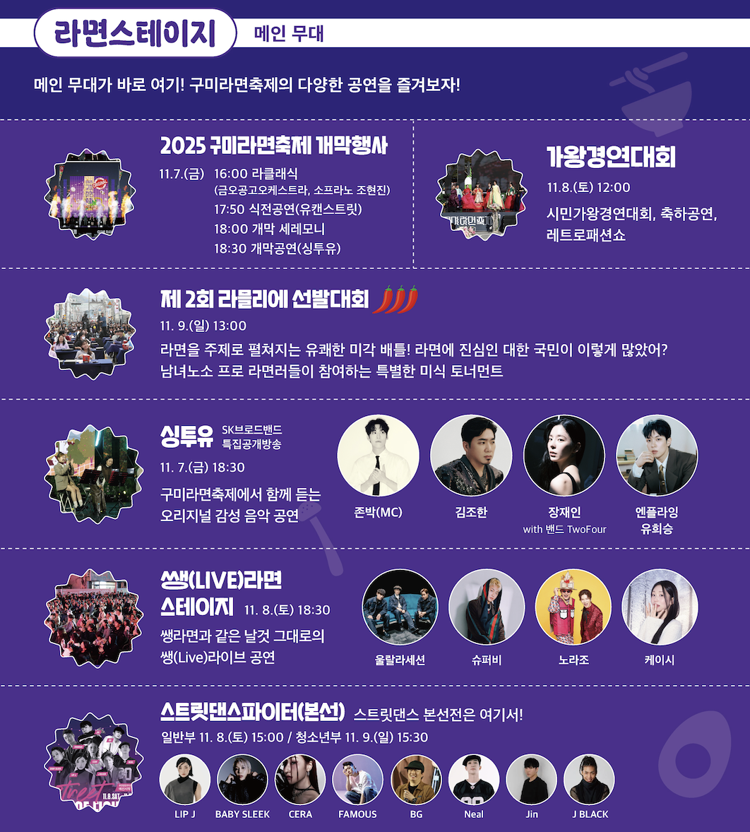 *위 사진과 관련 정보는 '2025 구미 라면 축제 대표 홈페이지' 에서 발췌하였습니다.