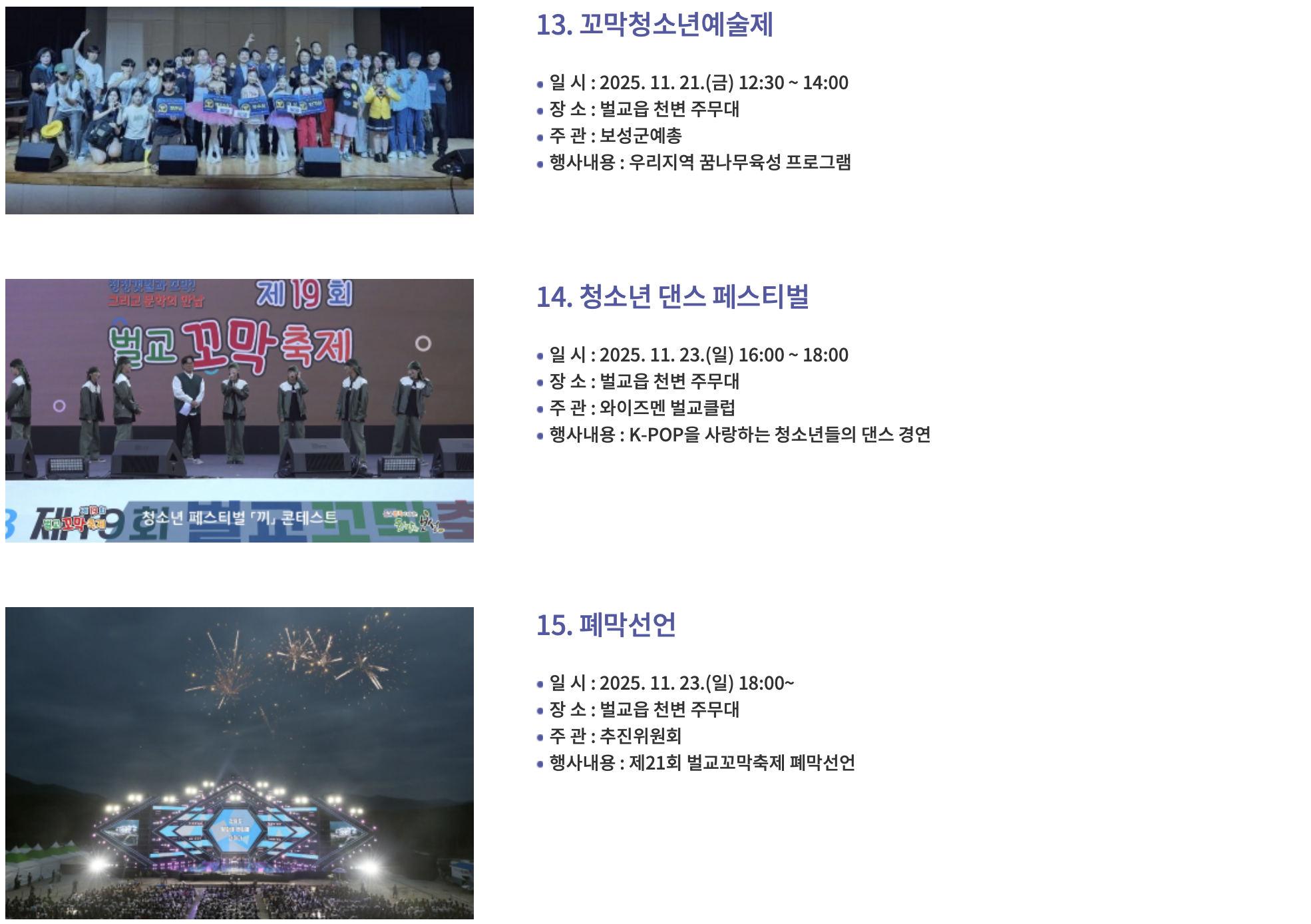 나. 부대 프로그램 : MBC 가요 베스트, 꼬막 주먹밥 만들기, 꼬막 노래자랑, 청소년 예술제 및 댄스 페스티벌 등