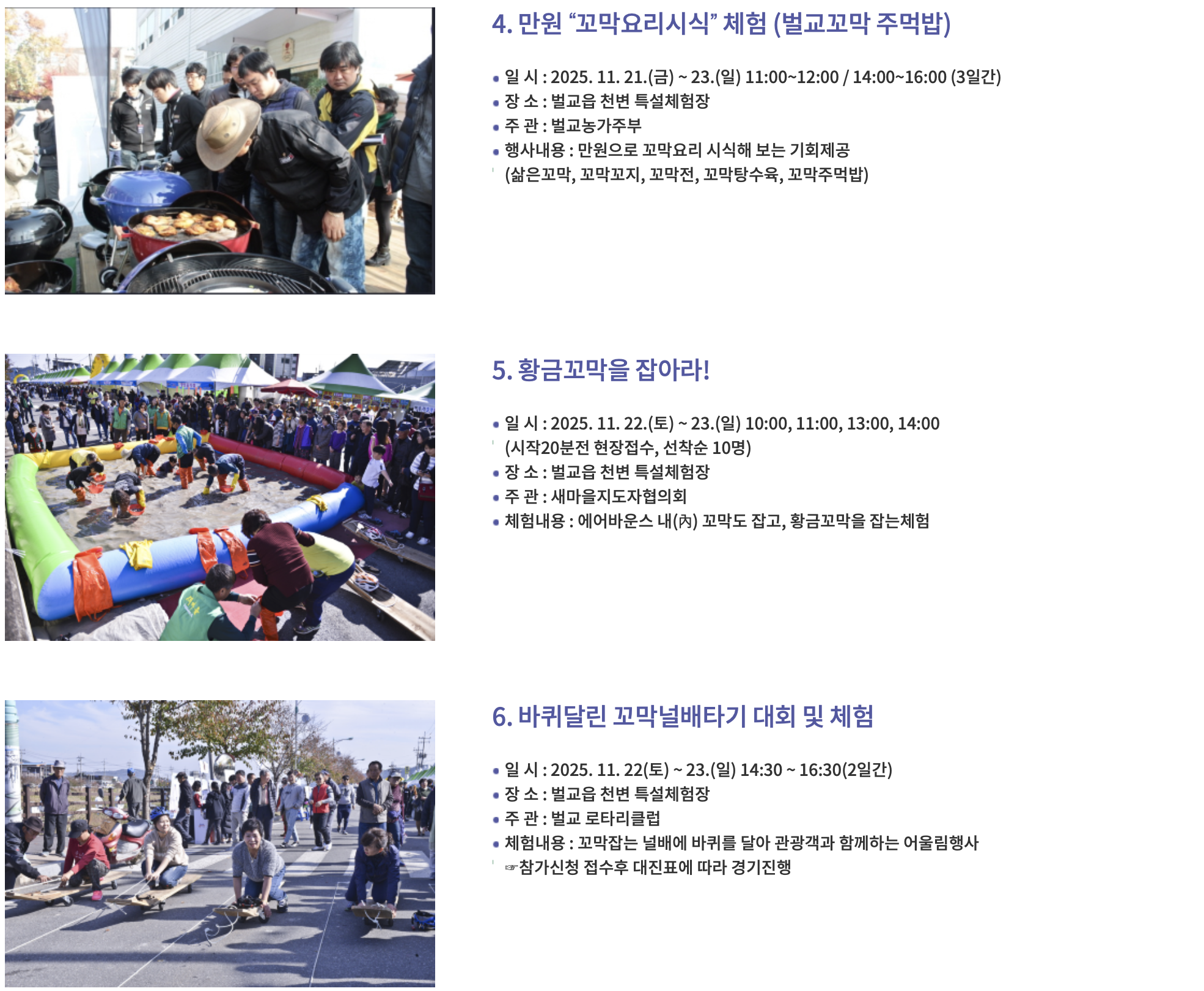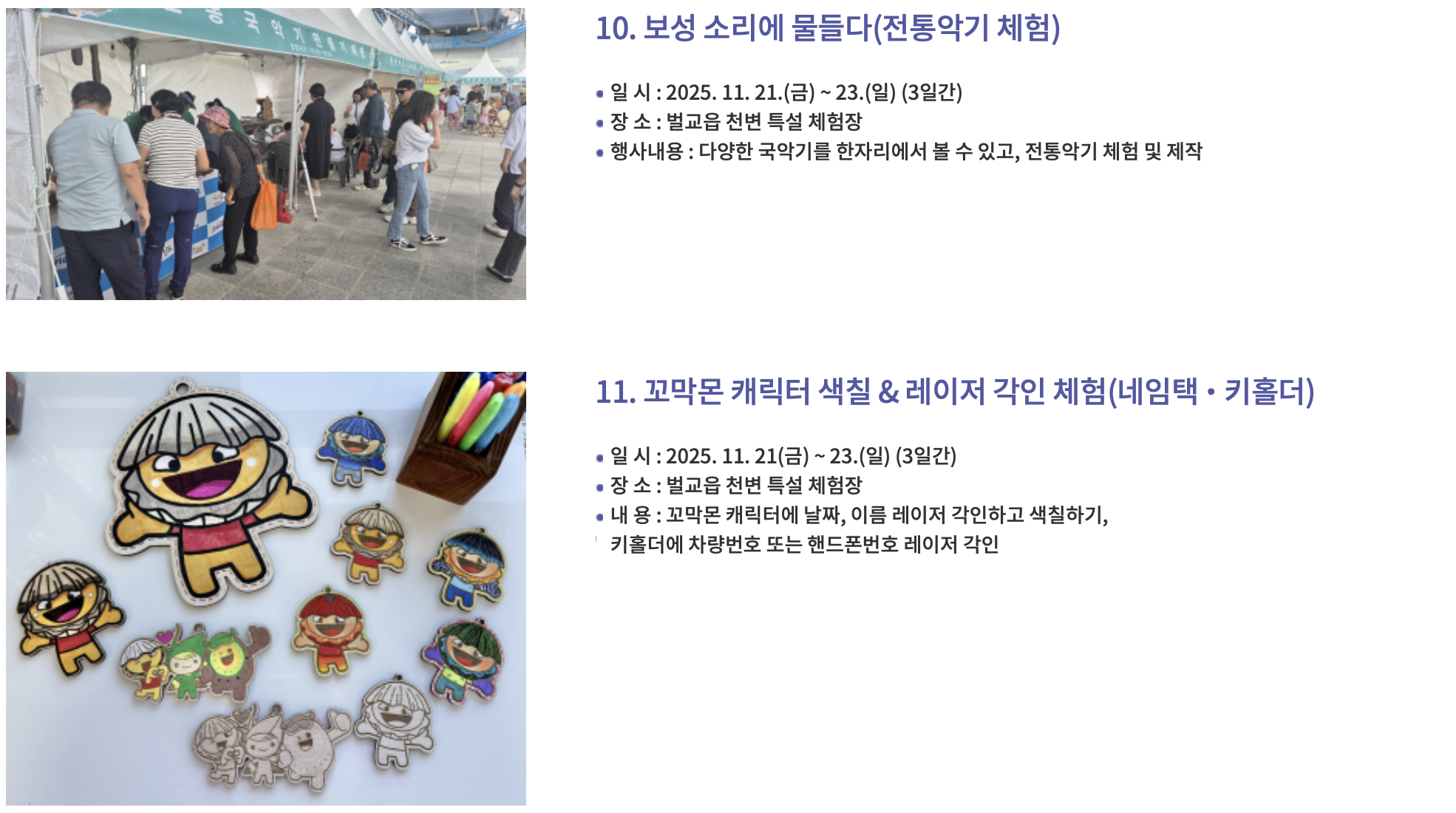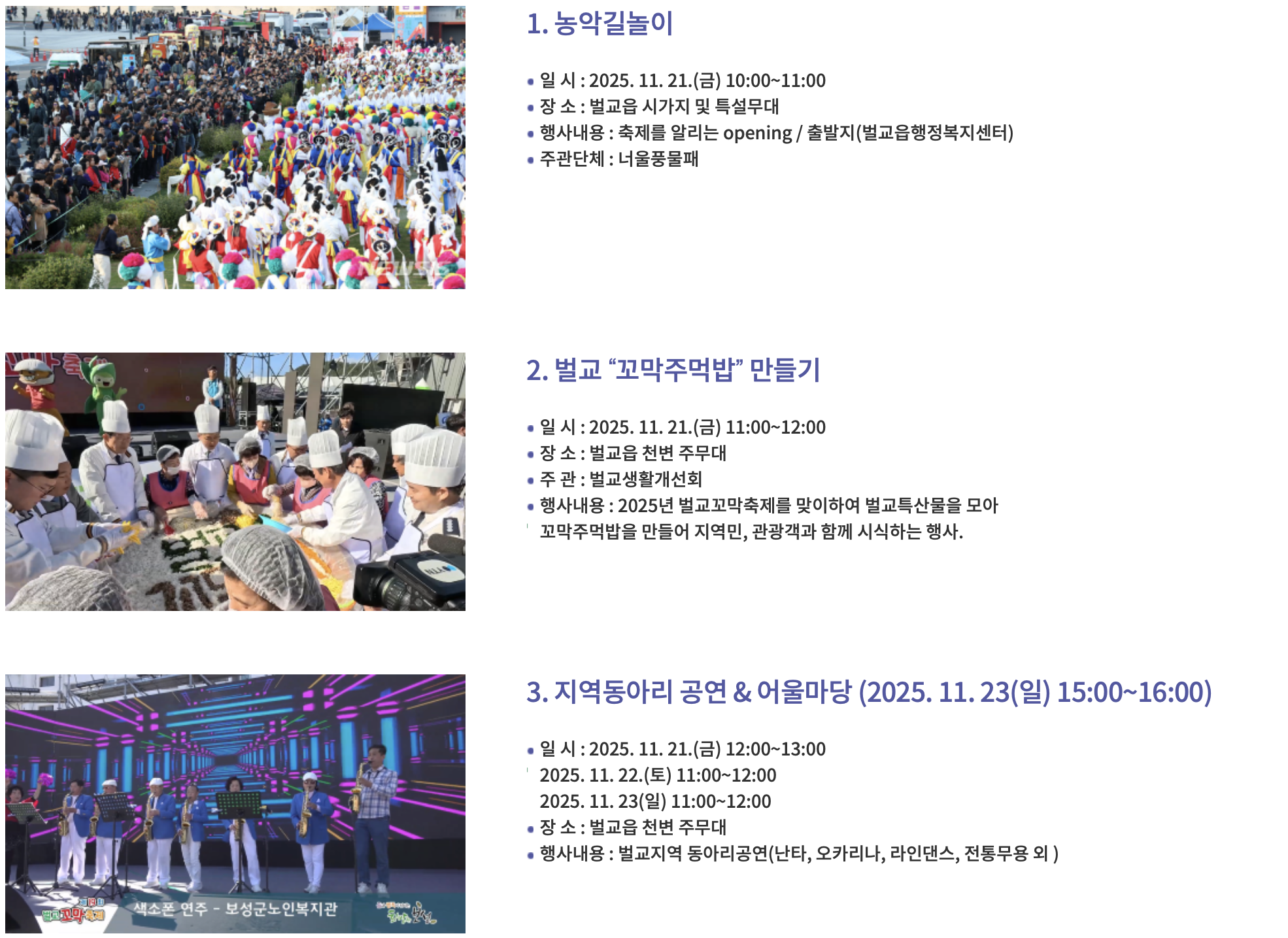 1. 행사 일정 : 2025년 11월 21일(금) ~ 2025년 11월 23일(일)
