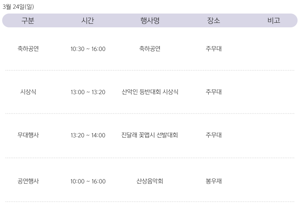 진달래 꽃맵시 선발대회가 진행될 예정이오니,